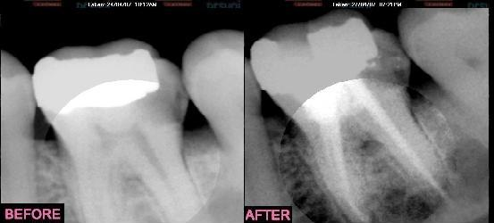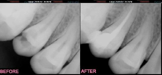 Root canal treatment of teeth is the most common of all Dental procedures. The inside of a tooth can become diseased or infected due to Decay, A very deep filling Periodontal disease. A severe trauma to the tooth such as a fall or accident Any one of these causes may result in swelling and pain, or sometimes a slow painless degeneration may occur. These events eventually cause destruction of the bone of the tooth socket and result in an abscess. The aim of root canal therapy is to remove the source of the infection from within the tooth. Once this is done and the destructive process is stopped, your normal healing can then take over.